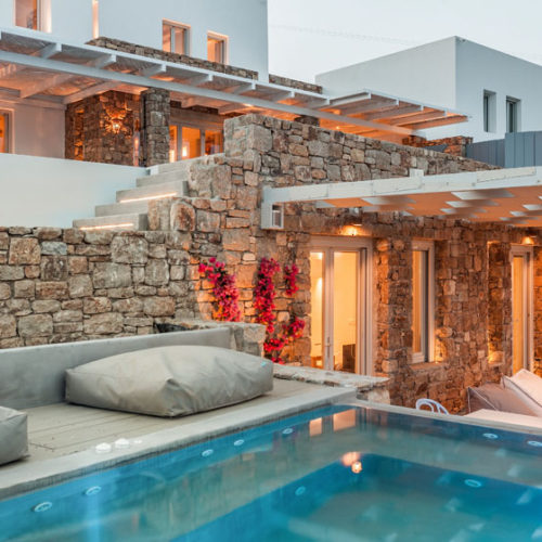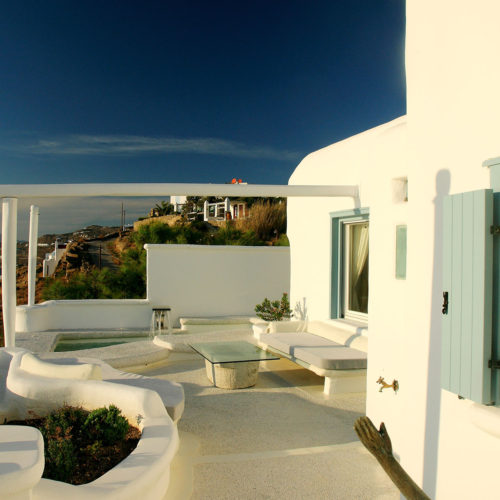 Hector is a traditional Mykonian home that is set on a rocky location found...
