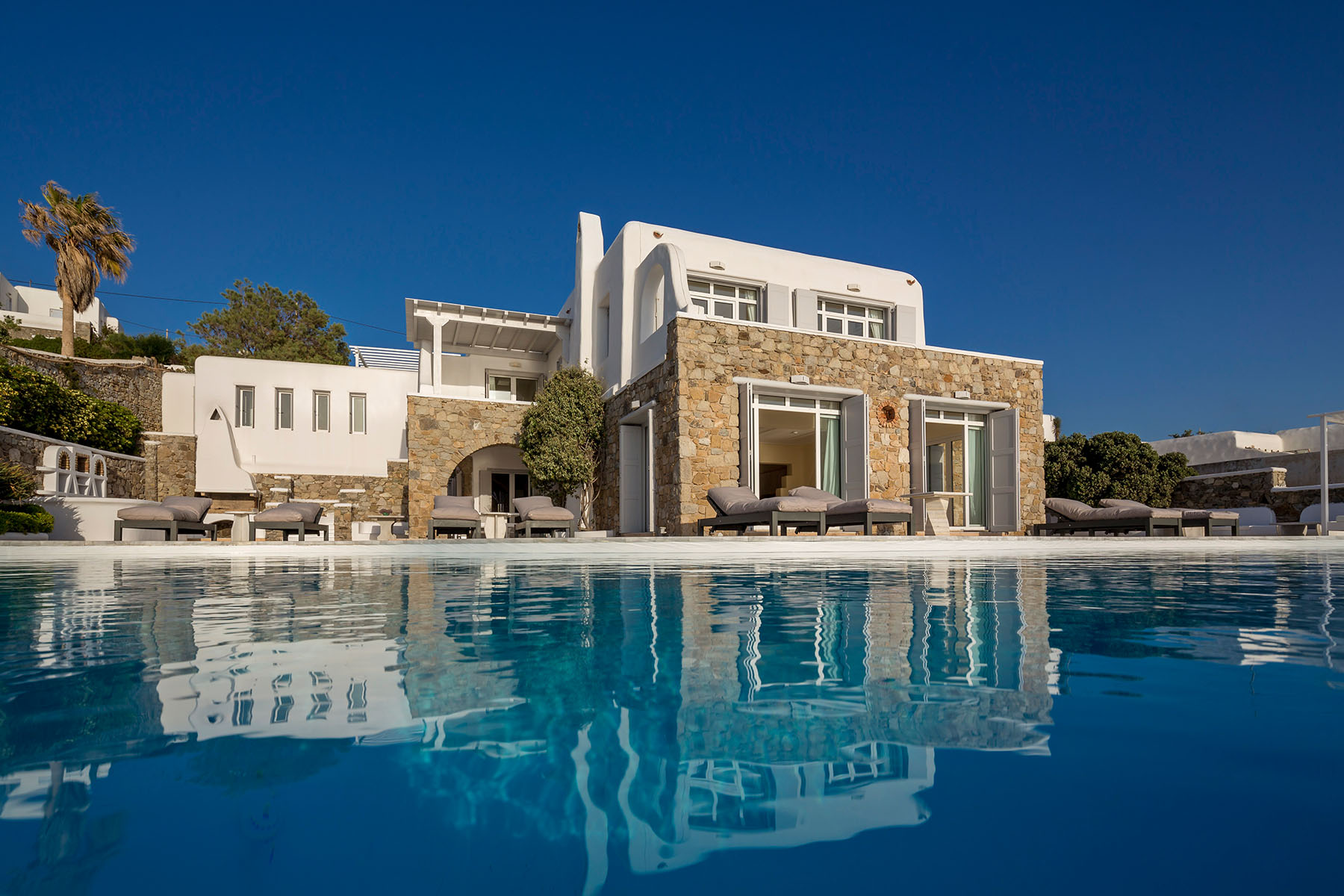 Cassandra is the neighbor of villa Iokasti sharing the same unique sunset, sea views and the magnificent ancient island of Delos. It has been a favorite amongst MyMykonos repeat clients for combination of wedding events and unforgettable holidays.