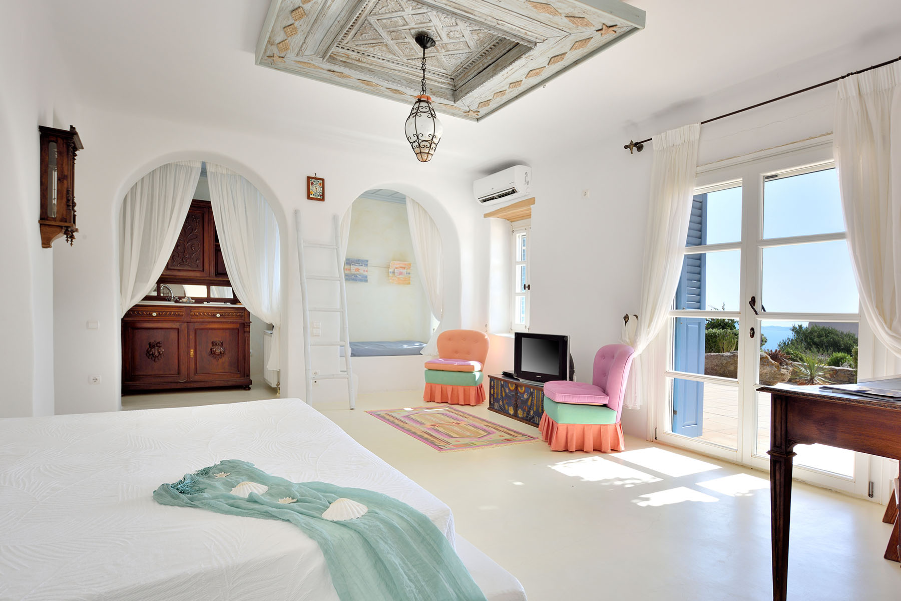 This luxury property is just a breath away from the new port of Mykonos in the area of Tourlos and a less than a 5-minute drive to the Town of Mykonos making its location one of the most favored in the island. Ariadni is a more boho style villa with wooden floors, various refined paintings, and sophisticated decoration with plenty of antiques.
