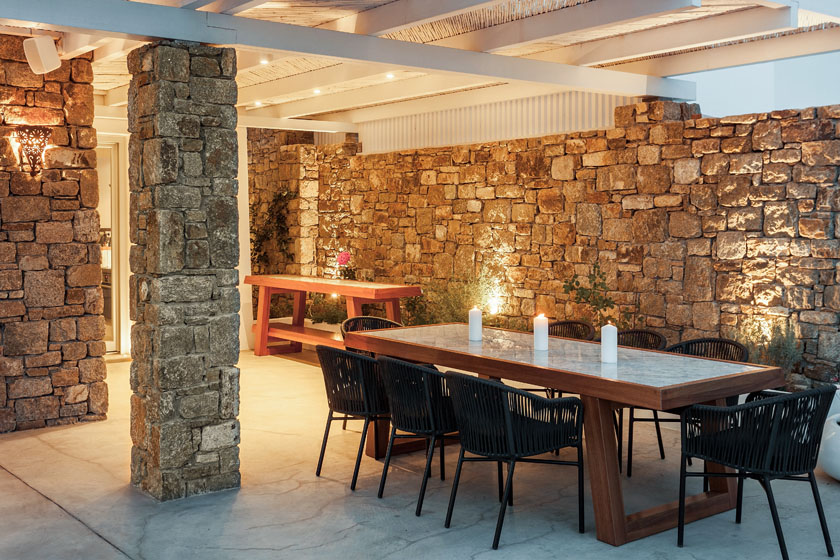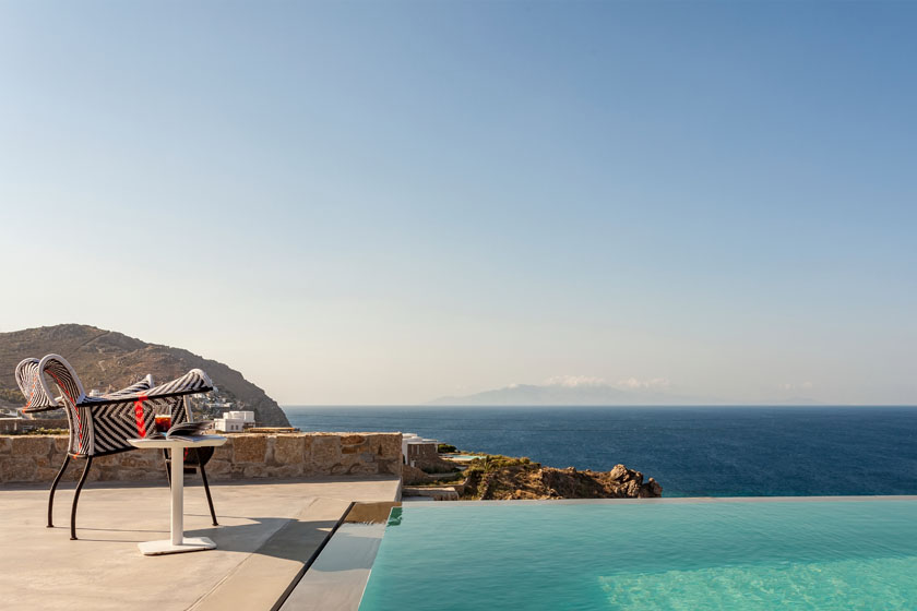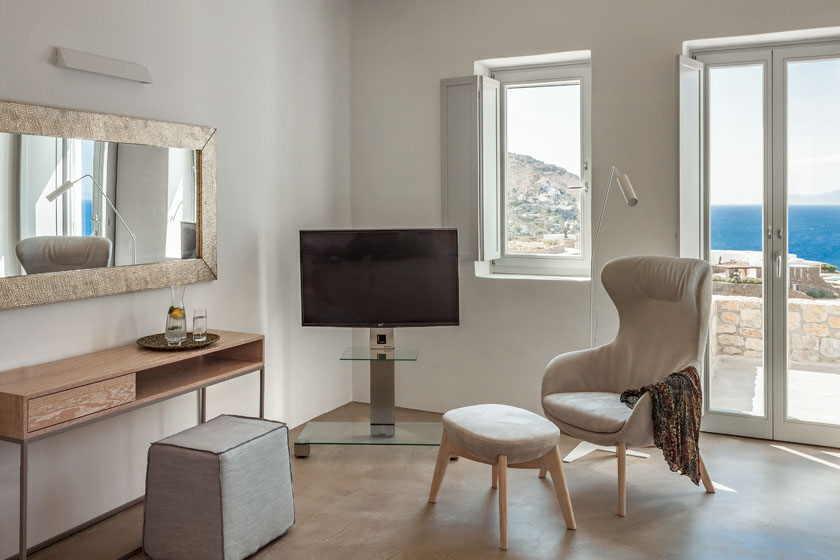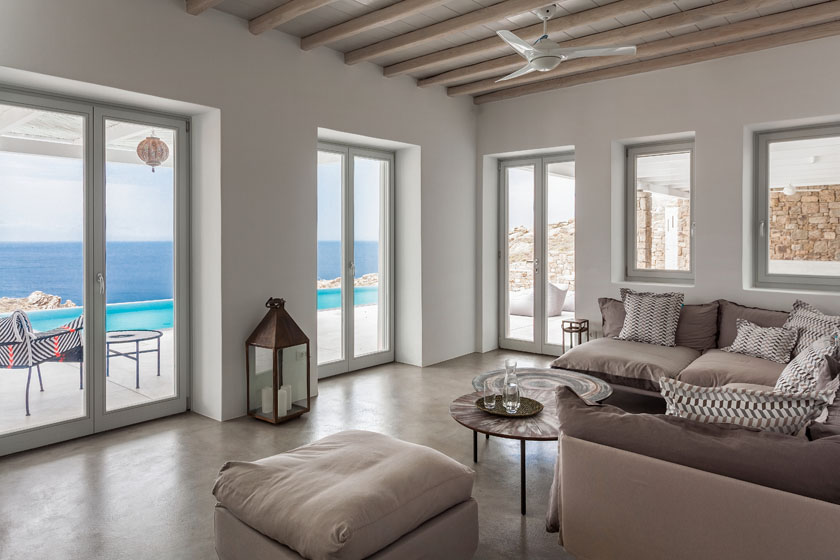 The villa is comprised by the main building and 3 independent guesthouses, spacious outdoors with various lounge areas and furniture and an amazing private swimming pool. From most corners of this unique property breathtaking sea views can be enjoyed, whereas the interiors are defined by its minimalism, with very high end materials throughout and the full equipment of this property will ensure its guests the most luxury and comfortable summer holiday in the island of the winds. Another added advantage is the cosmopolitan beach of Elia being just a few minutes drive away.