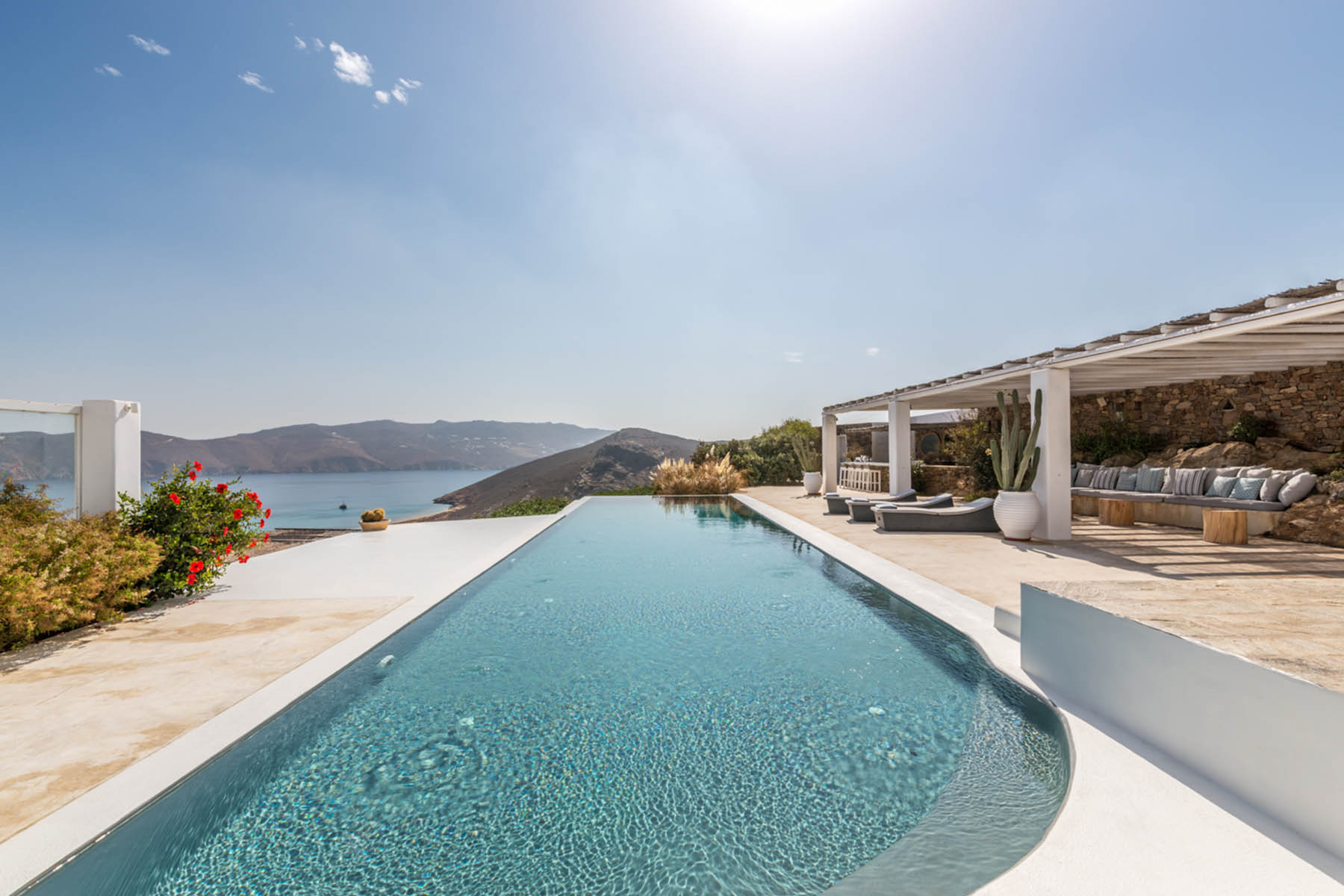Baltazar is an ideal option for those seeking a prime, modern villa on the island. This villa is much appreciated by families & groups of friends who value stylish ambience and great sense of style from the indoor decorations to the outdoors. It is located uphill above the sandy beach of Panormos offering amazing views, and a great deal of privacy & elegance. Its location is also very favourable as it is within close proximity from Mykonos Town.
