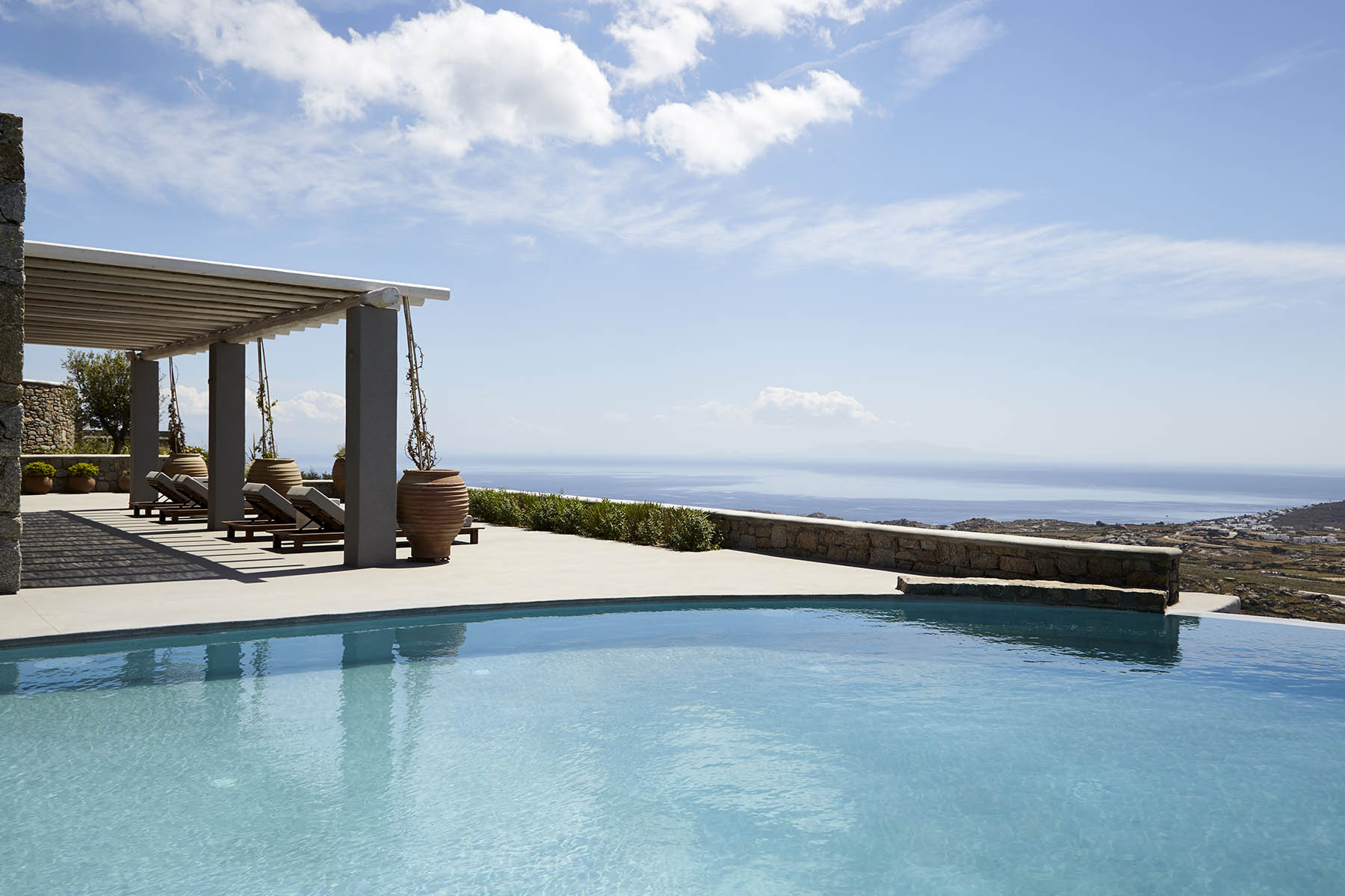 The amazing 90m2 drop shaped infinity pool with Jacuzzi and fiber optics, is undoubtedly the villa’s jewel. Remarkable outdoor dining, sitting and bar areas, excellent gardens that will only take your breath away in addition with having the whole of Mykonos in your plate!