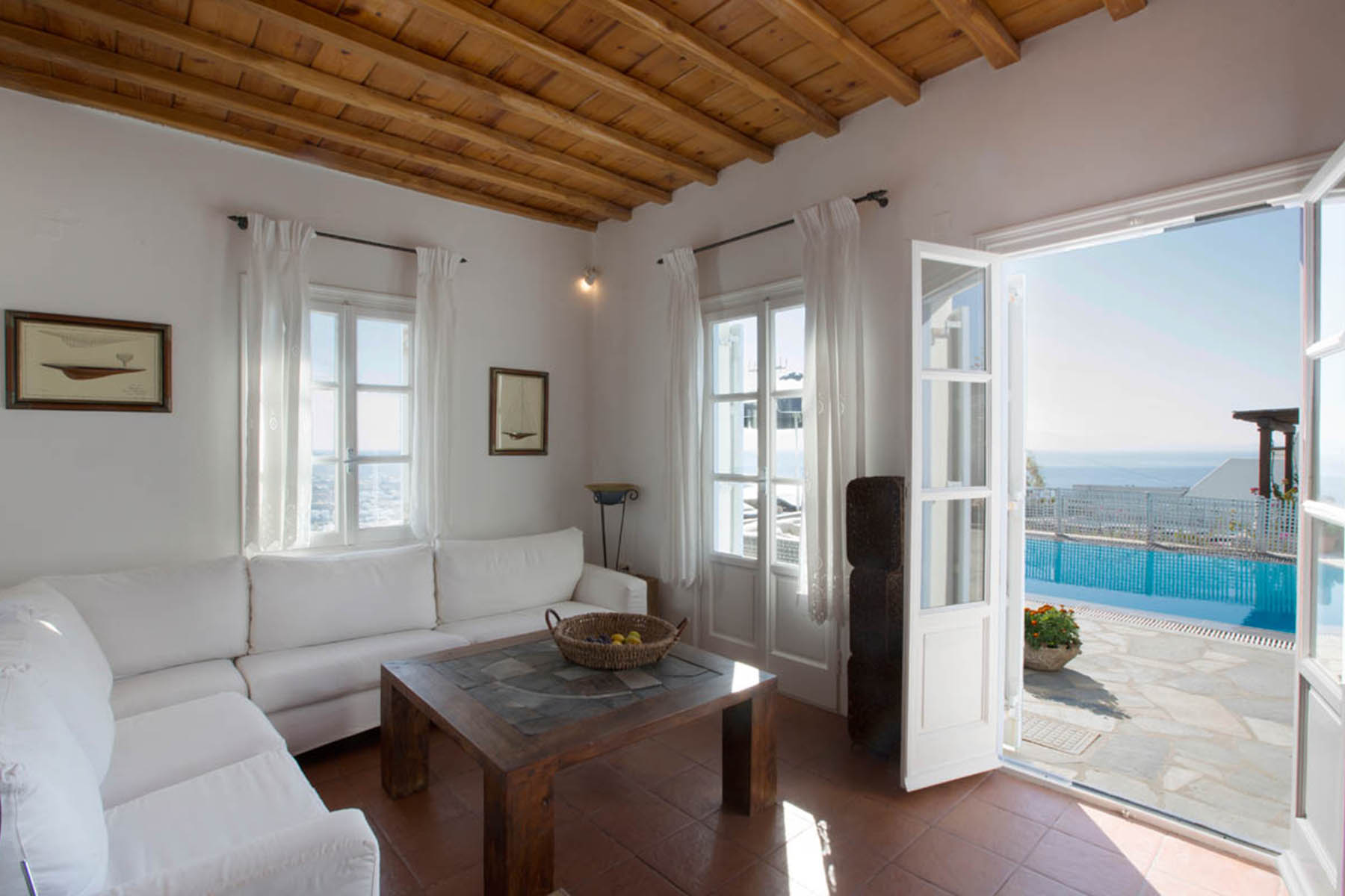 Phoebe is your typical Mykonian summer house designed in a way to be enjoyed by families or large groups of friends & couples. The outdoors are divided in many lounge and relaxing areas with sea views from every corner. Whereas the indoors can be regarded as classy with an open-plan living area which also overlooks the pool area and the famous bay of Psarou.